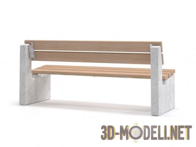 Уличная скамья со спинкой производства бренда BURRI, серия MARO. Опорная конструкция скамьи: оцинкованная стальная плита, боковые кронштейны сделаны из бетона, серого цвета. Сиденье и спинка деревянные. Общий вес 145 кг. Размеры: 1800 х 790 х 450 х 634 мм