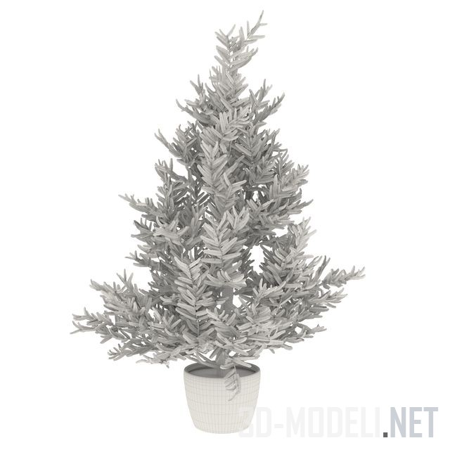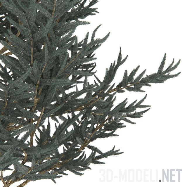 Небольшая голубая ель, с пирамидальной кроной, высотой 53 см. Дерево высажено в черный пластиковый горшок круглого сечения.