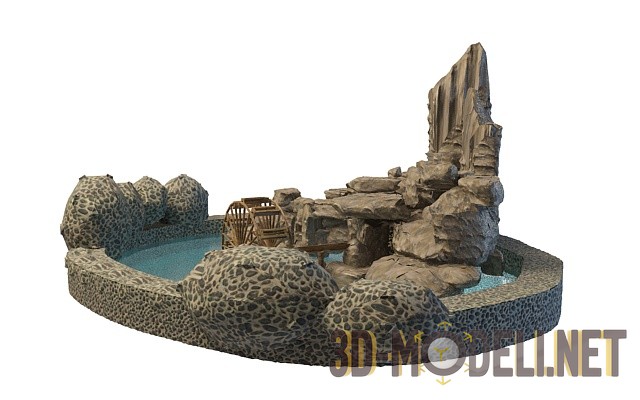 3D-модель экстерьерного элемента - каменный сад с бассейном, скалами, в сцену также входит водяное деревянное колесо. Модель имеет настроенные материалы Vray, может использоваться для ландшафтных проектов. В комплекте есть текстуры, карты рельефа, нормалей и блика.
