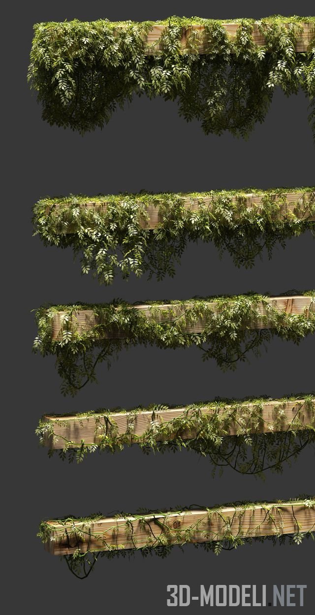 Красивый элемент интерьера для конструкций на открытом воздухе: пергол, беседок, навесов - деревянная балка с густой красивой вьющейся зеленью. Представлено 5 моделей. Сечение балки: 20 x 20 см. Длина: 400 см.