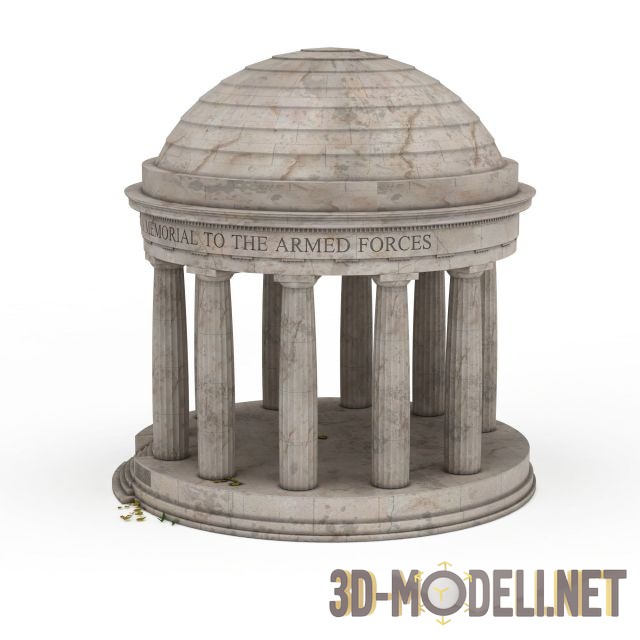 3D-модель павильона-мемориала из камня с колоннами. Качественная модель для архитектурных рендеров, есть все текстуры и настроенные материалы.