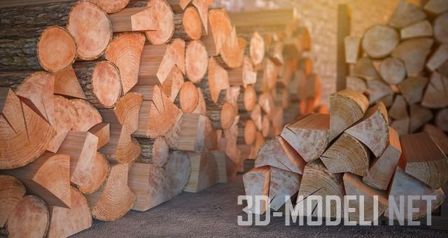 Качественно и реалистично выполненная 3d модель для экстерьера (может использоваться в интерьере, например, рядом с камином), сосновых дров с подставками.