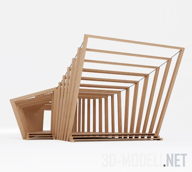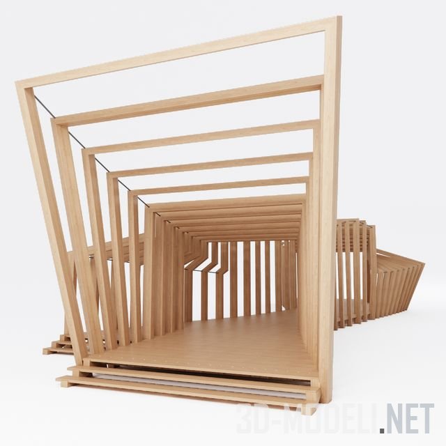 Деревянный входной павильон из светло-коричневого дерева, выполнен в современном стиле.
