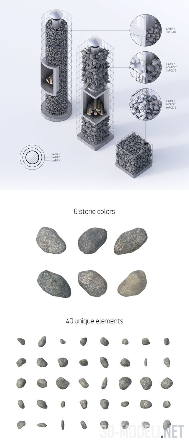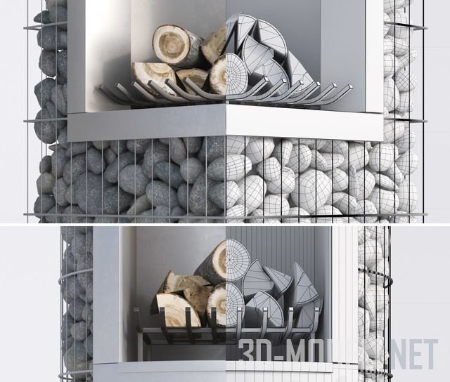Современный вариант сочетания барбекю и габиона. Сцена содержит три вариант модели: