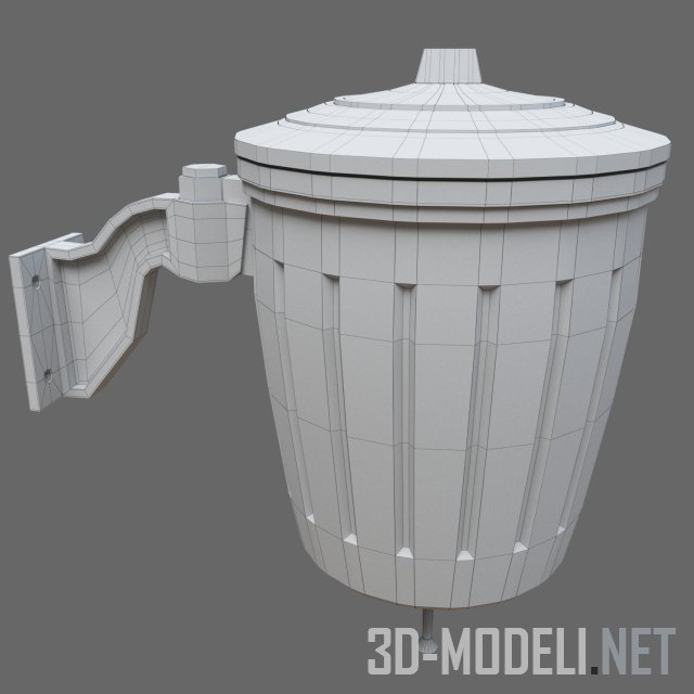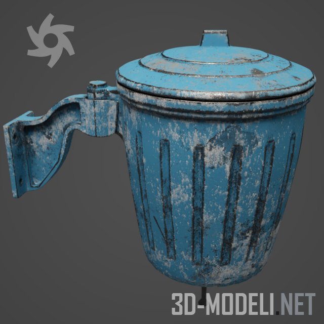 Рустикальный подвесной рукомойник голубого цвета. Литая поверхность емкости рукомойника, крышка и кронштейн выкрашены облупившейся краской. Кромки предмета - потерты. Сквозь потертости просматривается серебристый металл.