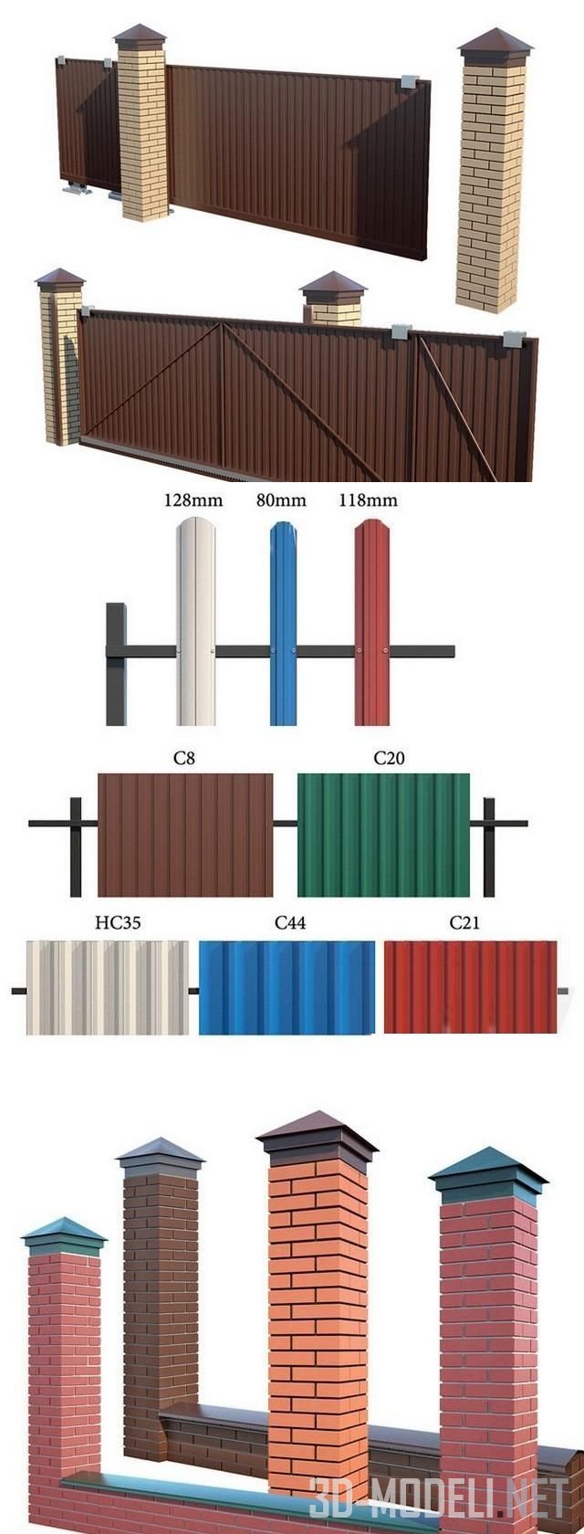 Прекрасный конструктор для создания забора. Набор содержит следующие элементы: