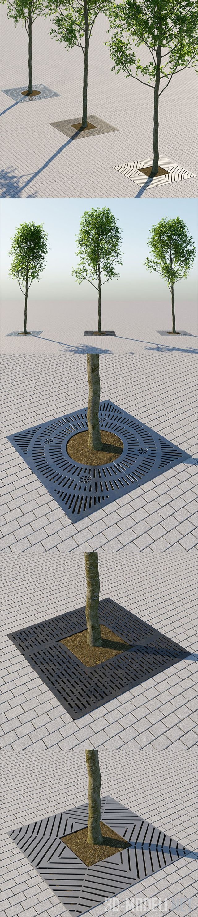 Модель для экстерьера, которая поможет добавить детальности в проекты, направленные на благоустройство мостовых, тротуаров, и дворов. Это три дерева, в комплекте с тремя видами декоративных стальных решеток, для отделки места посадки.