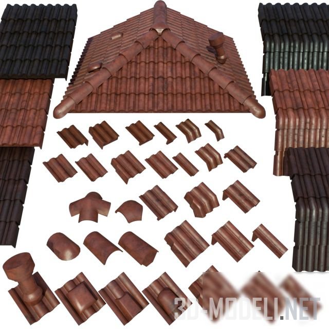 Отличный сет для строительных проектов, керамическая черепица для крыши. В наборе присутствуют следующие элементы для формирования крыши: