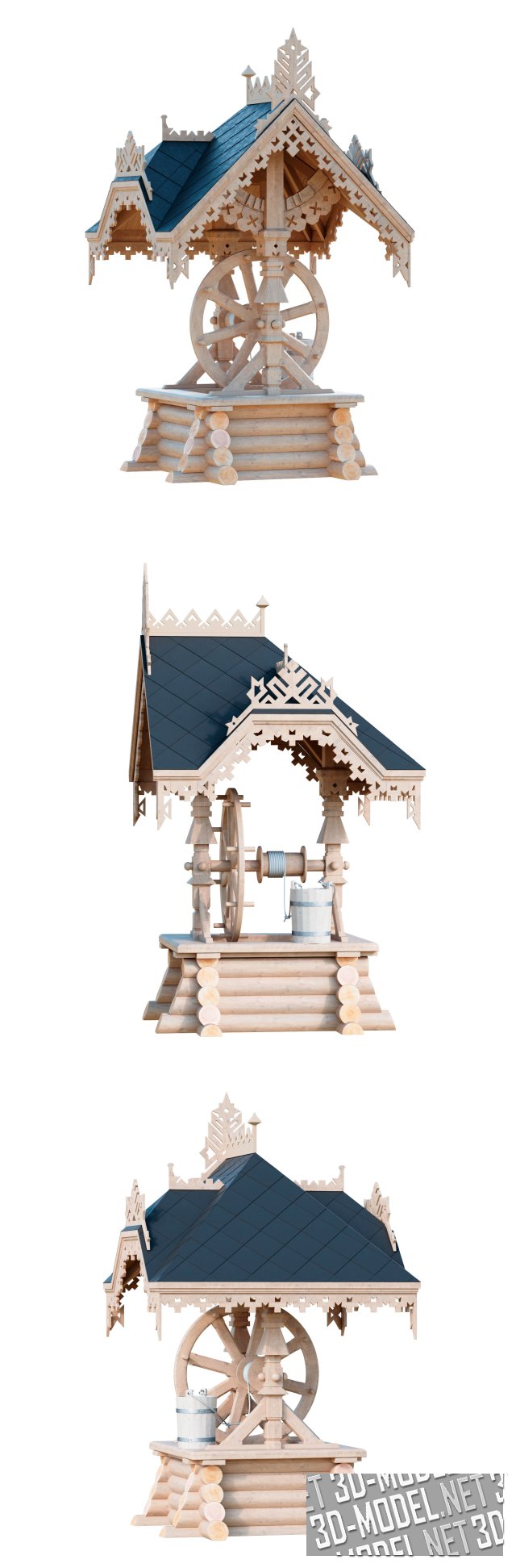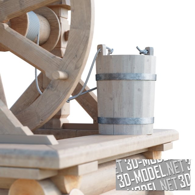 Архитектурный элемент русского деревянного зодчества, выполненные в псевдорусском стиле - деревянный резной колодец (их альбома "Мотивы русского зодчества", 1877). Реалистичная и детальная трехмерная модель для использования в различных проектах.