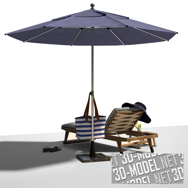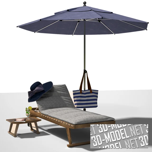 Современный шезлонг из коллекции GIO от производителя B&B Italia вместе с другими аксессуарами сделает отдых на пляже и в саду незабываемым. В набор также входят: пляжный зонт EASY TRACK от шведского производителя Brafab, сумка Colin's, маленький столик, шляпа, шлепки и бокал с лимонадом.