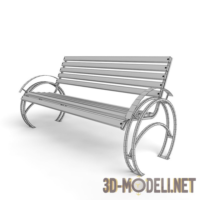 3D-модель уличной деревянной скамейки, на металлических дугообразных ножках. Смотрится интересно и гармонично, что положительно скажется на используемом проекте.