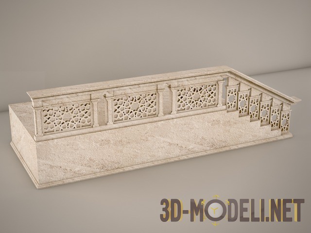 3D-модель каменной лестницы в этническом стиле, с исламскими узорами. Это деталь экстерьера для архитектурных визуализаций, с текстурами и готовым материалом камня для Vray.