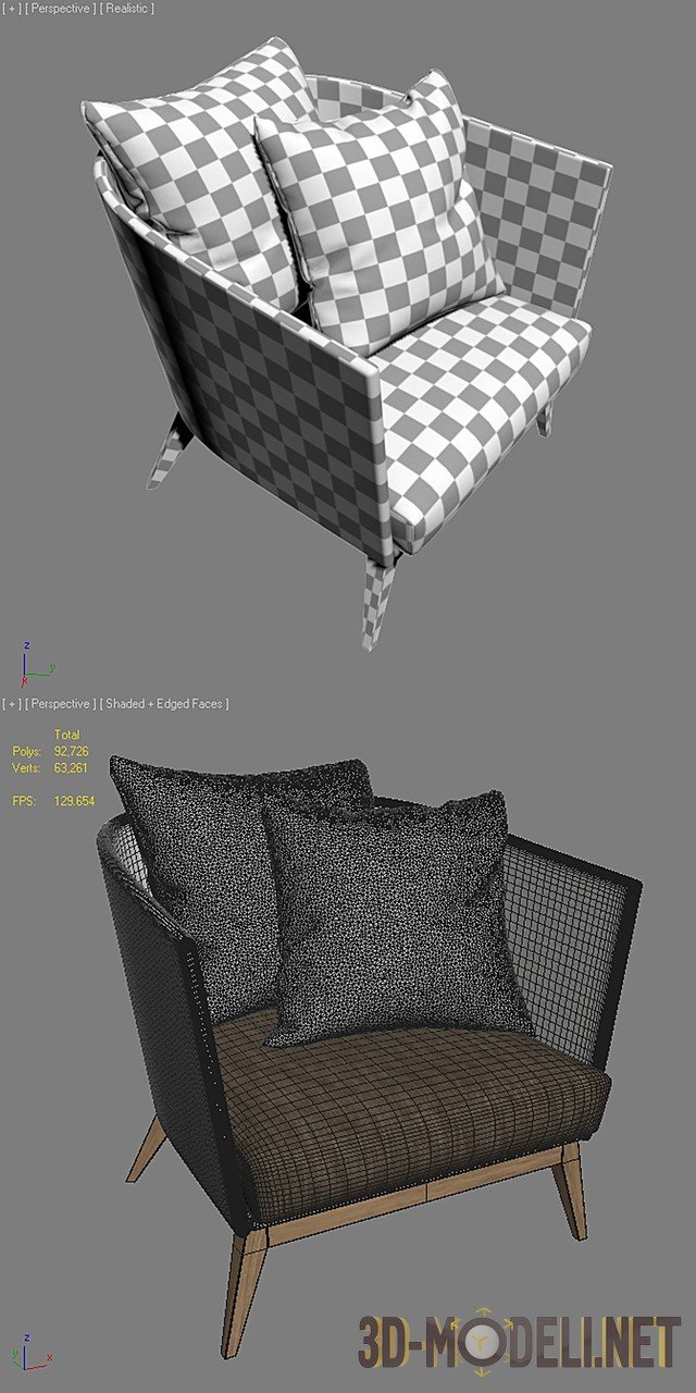 3d-модель в формате 3ds max 2010 и 2012, fbx, с текстурами и материалами Vray, кресла Point Arc. Материалами изготовления послужил ротанг и тиковое дерево, что делает кресло устойчивой мебелью к любым погодным условиям, а также пригодным к частому, ежедневному использованию. В качестве отделки выбрана акриловая ткань, благодаря которой обеспечивается стойкость к выцветанию на солнце. Чехлы съемные, в комплекте также предусмотрены две подушки. Габариты: 920 x 920 x 710