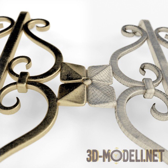 Красивая декоративная кованая решетка, состоящая из трех одинаковых кованых элементов, соединенных между собой маленькими изящными деталями. Решетка выглядит очень богато и респектабельно. Благодаря золотой отделке может быть использована в классическом дизайне.