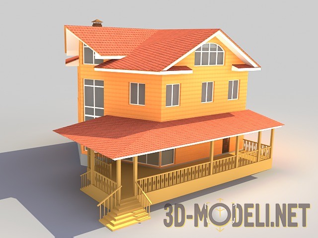 3D-модель 2-х этажного загородного коттеджа, с обширной террасой и мансардным помещением. В комплекте идут необходимые текстуры, материалы - для стандартного Scanline-рендера.