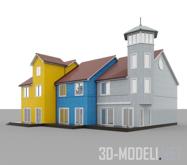 Типичная для Нидерландов архитектура прослеживается в строении этого дома. Яркие разноцветные фасады, плотно прижатые друг к другу и высокие двух- или четырехскатные крыши. Эта модель дома пригодится при создании проектов в соответствующем стиле.