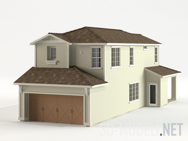 Аккуратная 3D-моделька простого, 2-х этажного загородного коттеджа. Окошки, ставни, крыша с черепицей - все мило и стандартно. Модель имеет низко-полигональную сетку - можно адаптировать к системам VR/AR. Текстуры есть.