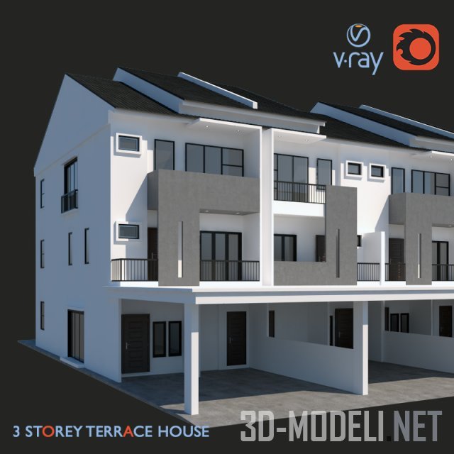 Модель многоквартирного трехэтажного дома с террасами. можно использовать для экстерьера. Выполнен реалистично, детально. Все текстуры присутствуют.