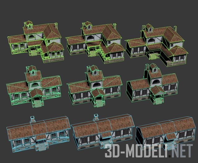 Несколько очаровательных белых домиков с красными черепичными крышами и коричневыми фахверковыми конструкциями. Кирпичные фундаменты и темные окна со шпросами дополняют общее стилевое впечатление.