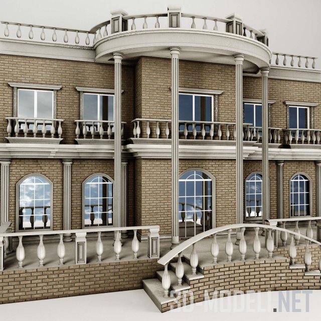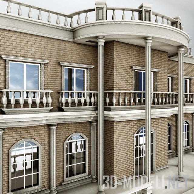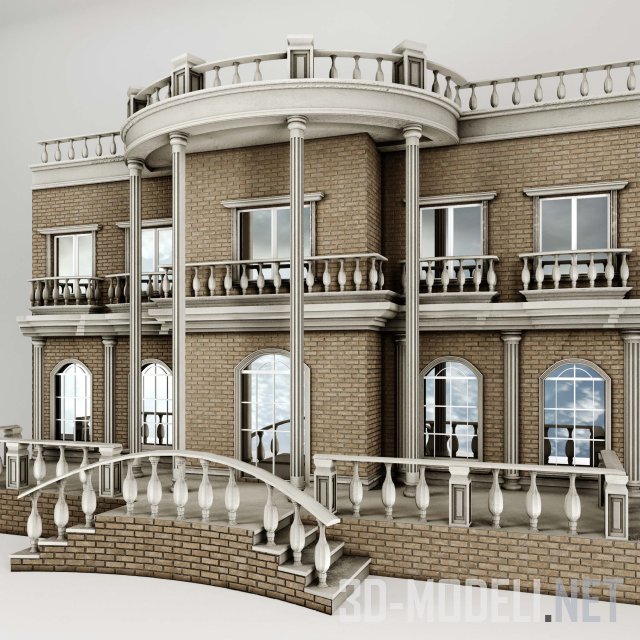 3D-Модель – Дома, коттеджи, здания – Классический фасад с балюстрадами