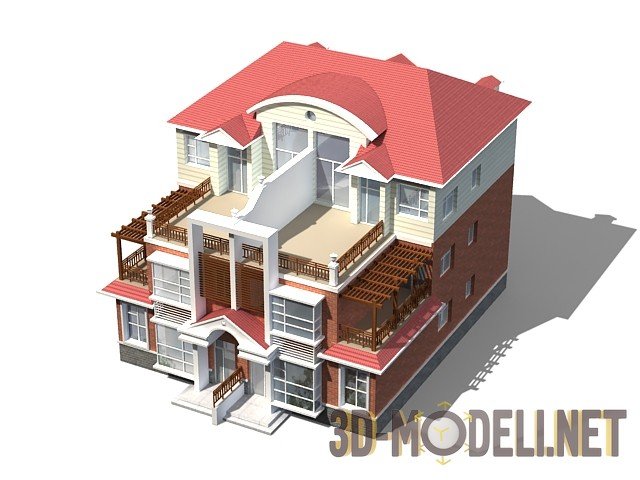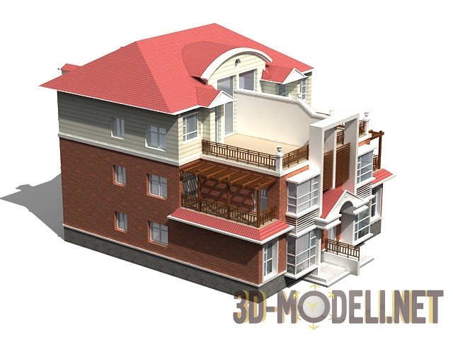 3D-модель современного 3-х этажного таунхауса (малоэтажный жилой дом на несколько многоуровневых квартир). В архиве вы найдете все нужные текстуры к этой модели.