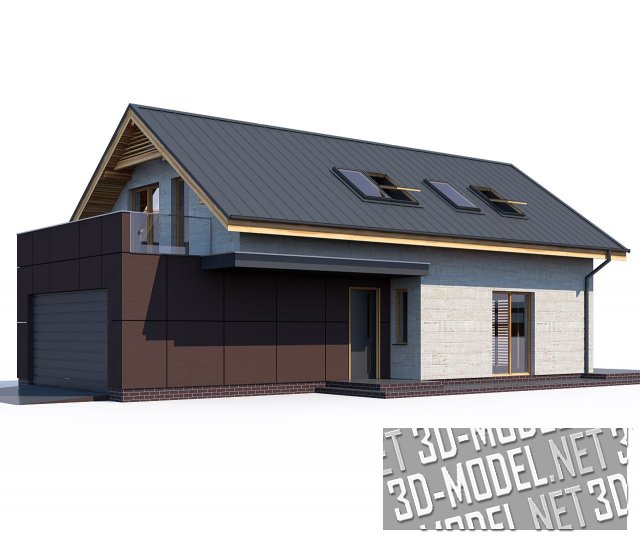 Индивидуальный проект современного одноэтажного частного дома. Дом со встроенным гаражом, с окнами в кровле. Присутствует три варианта отделки фасада.