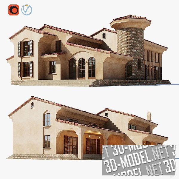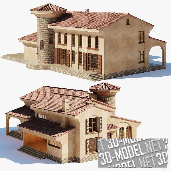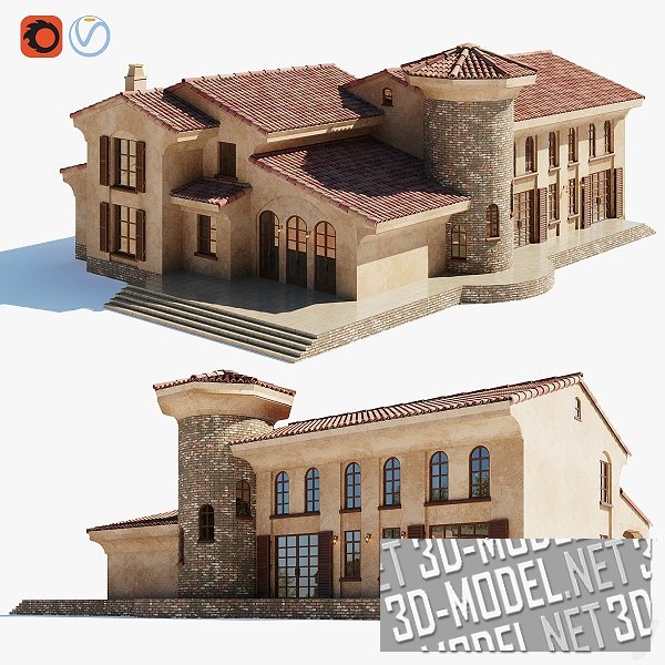 Для специальных экстерьерных проектов подойдет реалистичная вилла, выполненная в испанском колониальном (мексиканском) стиле. В доме шесть спален и шесть ванных комнат (поэтажные планы вилы находятся в архиве). Размер дома в осях 18x24 м.