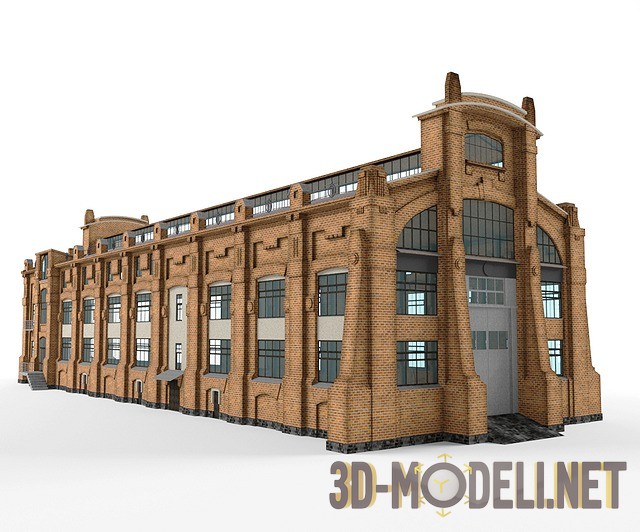 Отличная 3D модель большого индустриального здания европейского типа. Это кирпичная постройка в старом стиле, подобные здания (фабрики, цеха) можно увидеть в промышленных районах европейских городов.