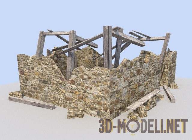 3D модель руины дома. Старые развалины камня и досок. Модель носит статус Low-Poly, в комплекте есть все текстуры, готова для использования в ваших игровых проектах.