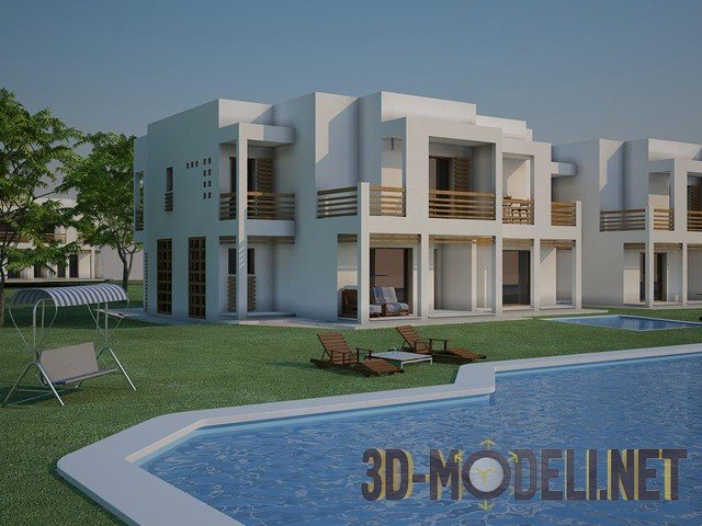 Качественная, детальная 3D-модель современной загородной виллы для отдыха, с бассейном и другими деталями экстерьера. 3D-сцена имеет настроенные реалистичные Vray материалы, все текстуры в комплекте и подготовлена для визуализации.