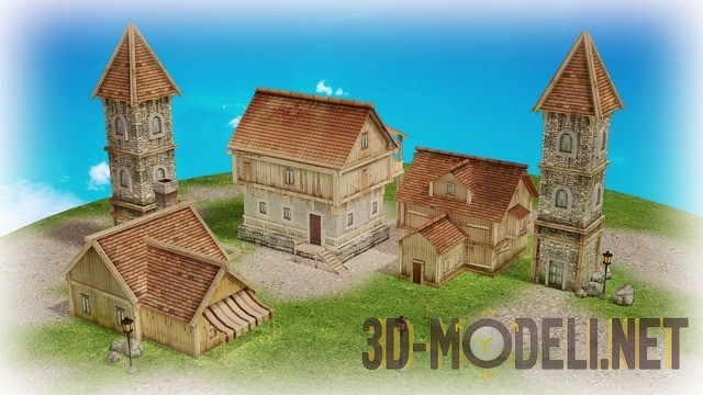 Симпатичная 3D модель средневековой деревеньки в формате low-poly. Домики, часовни, элементы экстерьера. В комплекте есть текстуры с UV-развертками, разрешением до 2048x2048 px. Отлично подойдет для создания игровых проектов.