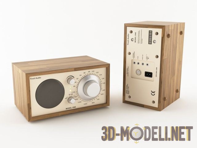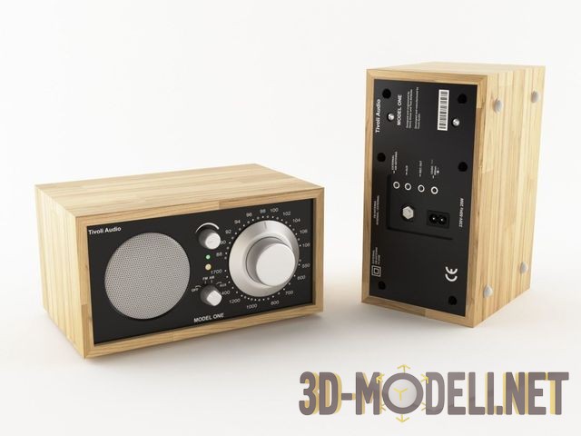 Радио Tivoli, в виде прямоугольного бокса. На передней панели размещён динамик, закрытый круглым экраном. Органы управления выполнены в виде трёх круглых ручек – большой и двух маленьких. На задней панели реалистично проработаны гнёзда для кабелей питания и аудиовыходов, а также технические маркировки. Модель представлена в нескольких вариантах сочетаний материалов стенок корпуса и панелей (передней и задней): чёрные стенки – фисташковые панели, молочно–белые панели с дубом, чёрные панели с сосновыми стенками и красные панели с белым корпусом. Размеры: 21 x 11 x 13 см