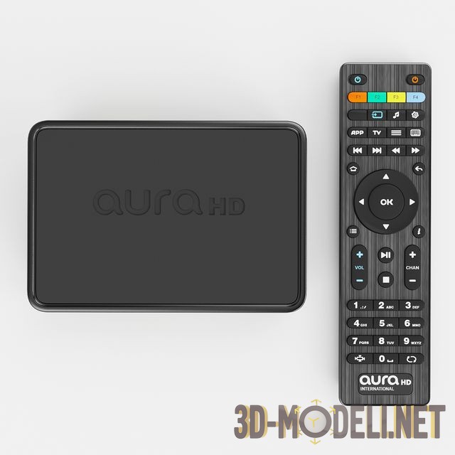 Небольшой современный медиа–плеер Aura HD. Чёрная коробочка корпуса снабжена USB гнездом, светодиодом сети и логотипом на передней панели, гнёзда различных назначений на задней и большим, рельефным лого на верхней плоскости. В комплекте – пульт дистанционного управления с брашированной чёрной панелью и массой кнопок.