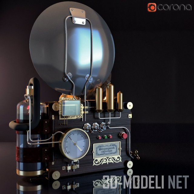 Детальная и качественная модель фотокамеры, выполненной в стилистике steam punk. Текстуры собраны в архиве.