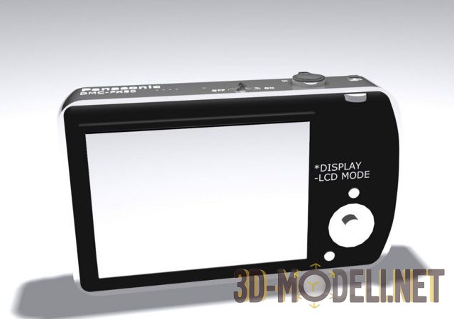 3D модель цифрового фотоаппарата из серии Lumix от небезызвестной компании Panasonic, созданная автором в 3DS Max за 20 минут «от нечего делать». 3D-конструкция содержит порядка 83 тыс. полигонов.