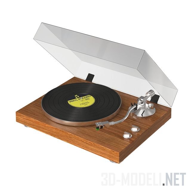 Коллекция винтажных виниловых пластинок и проигрыватель Gramophone Teac TN-400BT. Современный прибор изготовлен в стиле винтаж, на деревянной платформе с прозрачной крышкой.