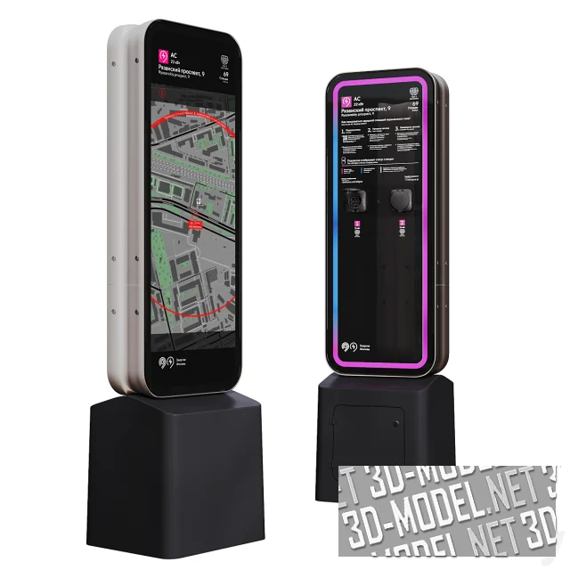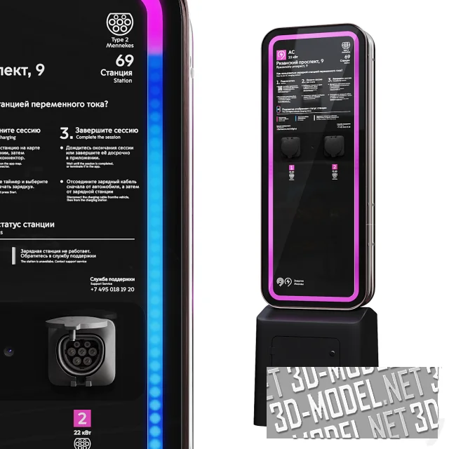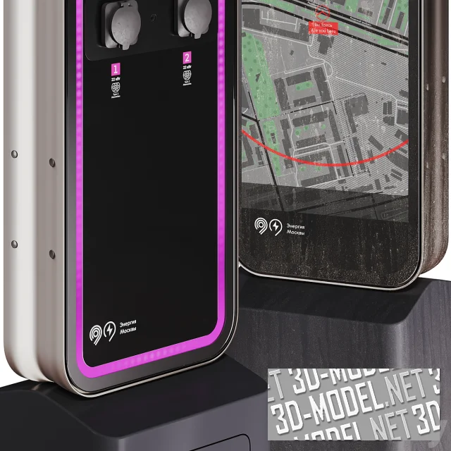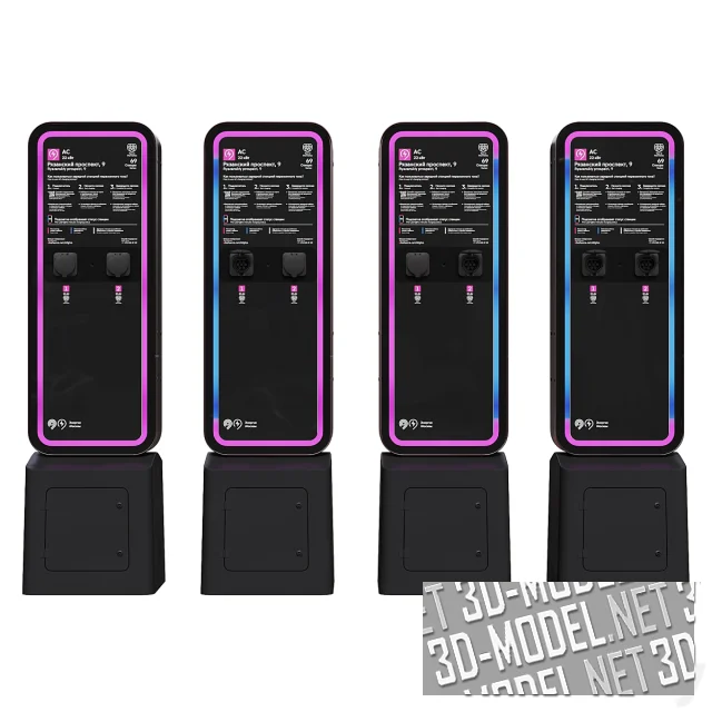 Для реалистчиных, современных архитектурных визуализаций необхидимы трехмерные модели высокого качества. Электрическая станция медленной зарядки «Moscow Energy» с двумя разъемами Mennekes (тип 2) на 22 кВт является точной трехмерной копией реального объекта. Архив содержит 4 модели зарядных станций с разными вариантами подключения (световая индикация) и 2 материала. Текстуры присутствуют.