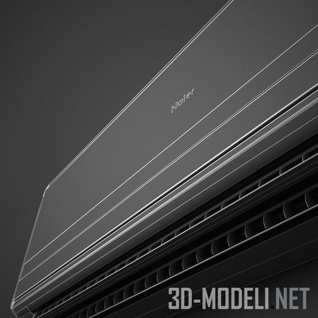 Внутренний блок современной сплит системы кондиционирования Haier. Прибор изготовлен в белом корпусе. Передняя плоскость кондиционера декорирована жемчужного цвета панелью со светлым контурным цветочным рисунком. В нижней части фронтальной плоскости размещена черная глянцевая панель с сенсорными органами управления и индикации.