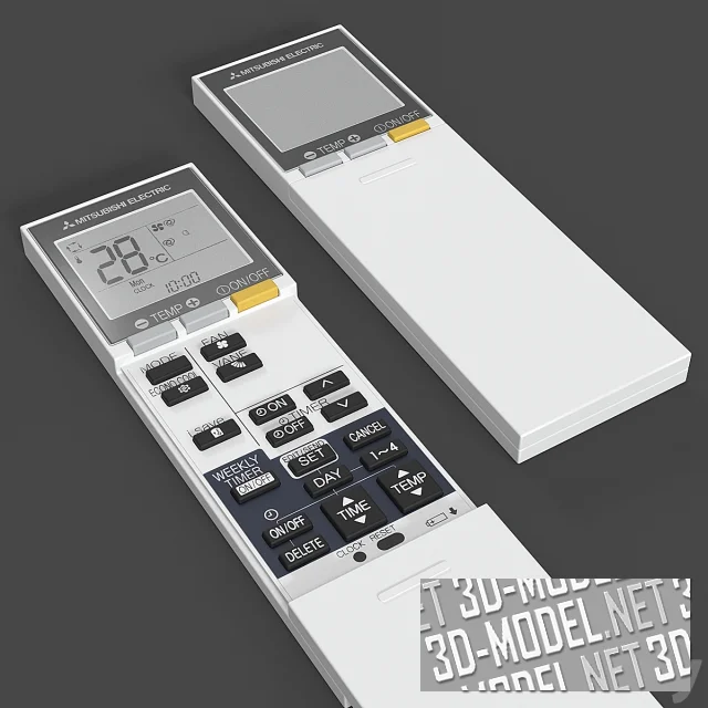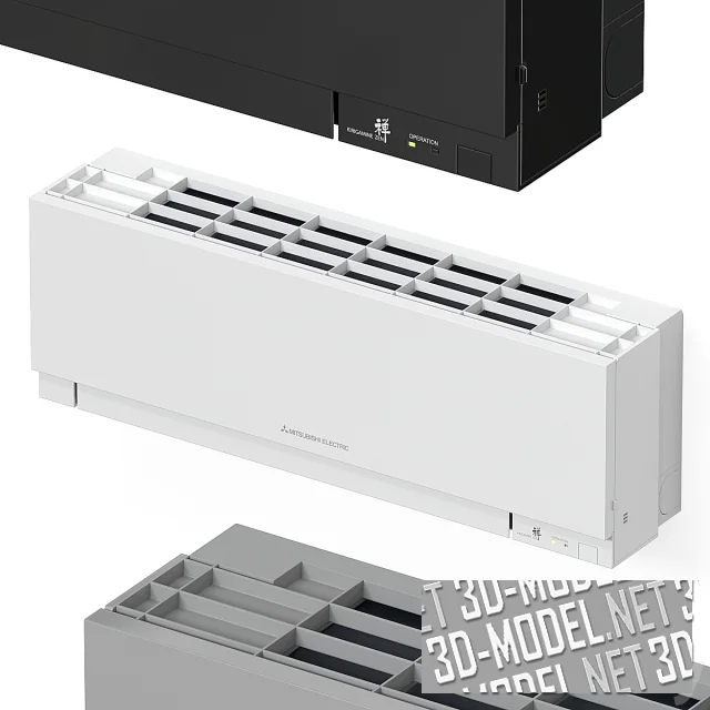 Внутренний блок кондиционера MSZ-EF от Mitsubishi Electric и пульт управления к нему. Корпуса блоков, выполненные в минималистичном дизайне, представлены в трех вариантах: черном, сером и белом цветах. Дистанционный пульт в белом корпусе оснащен сдвижной крышкой.