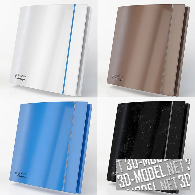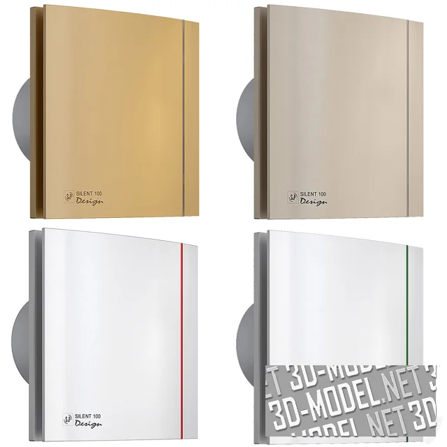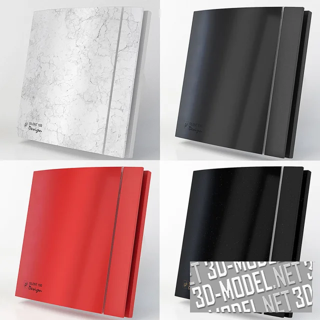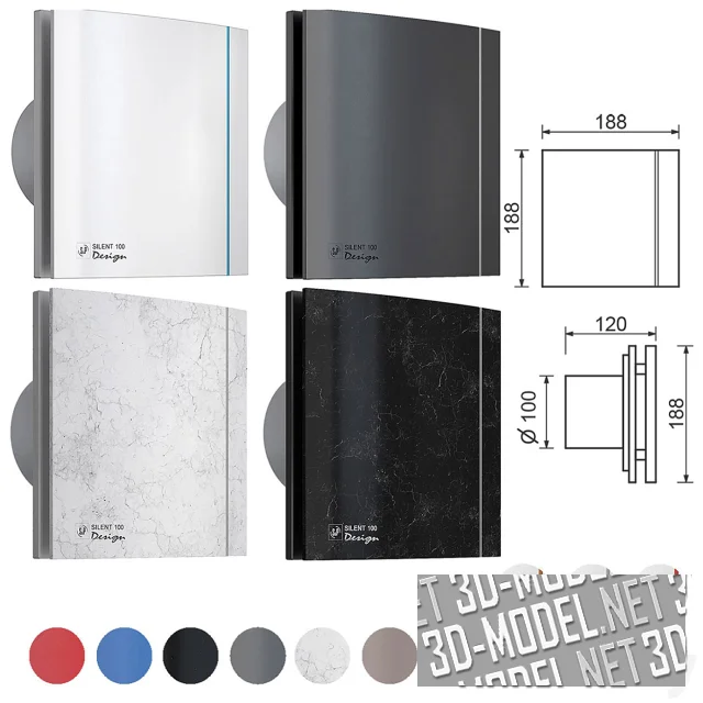 Компания Soler & Palau представляет современный вытяжной вентилятор SILENT-100. Его размеры: 188 х 188 х 120 мм. В комплекте представлены следующие цвета отделки: белый с синей полосой, белый с красной полосой, белый с зеленой полосой, белый с желтой полосой, белый и черный мрамор, цвет шампанского, слоновая кость, синий, красный, золотой.