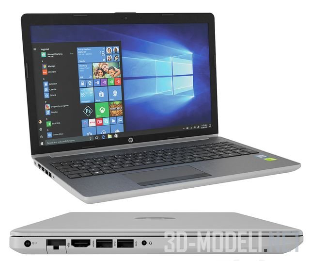 Одна из серийных моделей ноутбука Hp 15 da0051ns. Габарит изделия: 37.6 х 24.6 х 2.25 см. Трехмерная модель высокого качества, реалистичная. Материалы Vray, текстуры в архиве.