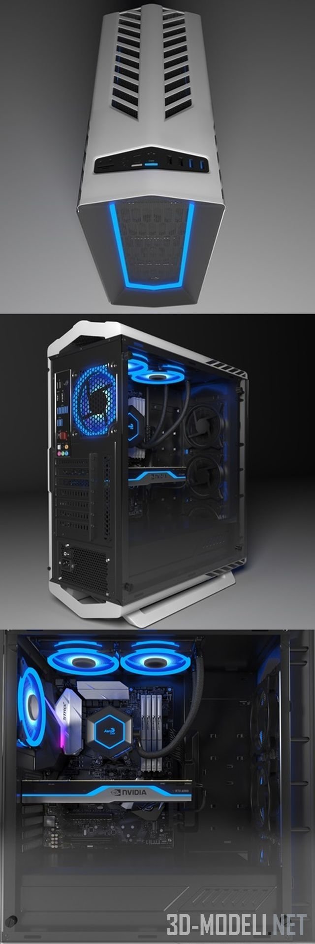 Компьютерный корпус AeroCool P7-C1 (белый), комплектующие: материнская плата ASUS ROG Strix X370F, система охлаждения AeroCool P7-L240, видеокарта PNY Quadro RTX6000, оперативная память HyperX Fury, вентилятор AeroCool Rev Blue.
