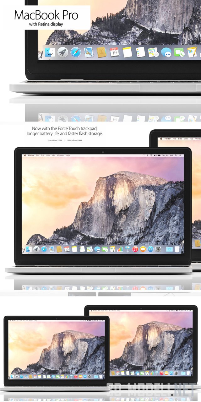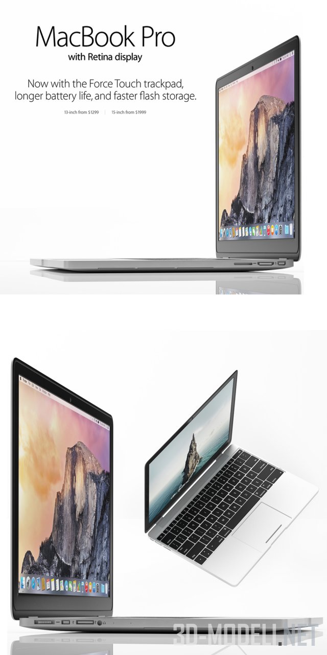 Высокого качества 3D модель ноутбука MacBook Pro. Компьютер с высокопроизводительными процессорами, панелью Touch Bar и превосходным дисплеем Retina и черной клавиатурой.