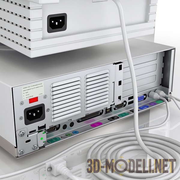 Реалистичная 3D-модель старого компьютера Compaq deskpro. Прекрасная модель с потрясающим уровнем детализации и достоверности. В сцену входят системный блок, фирменные клавиатура и мышка, монитор фирмы Dell.