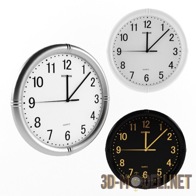 Wall Clock Rhythm - quality free 3d-model with Vray materials. Diameter of 280 mm. Ready to render - just put it into your scene.