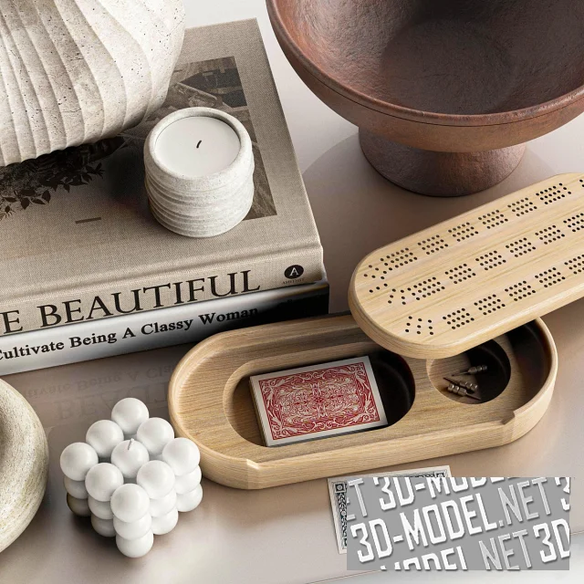Набор декора с керамикой, книгами и букетом