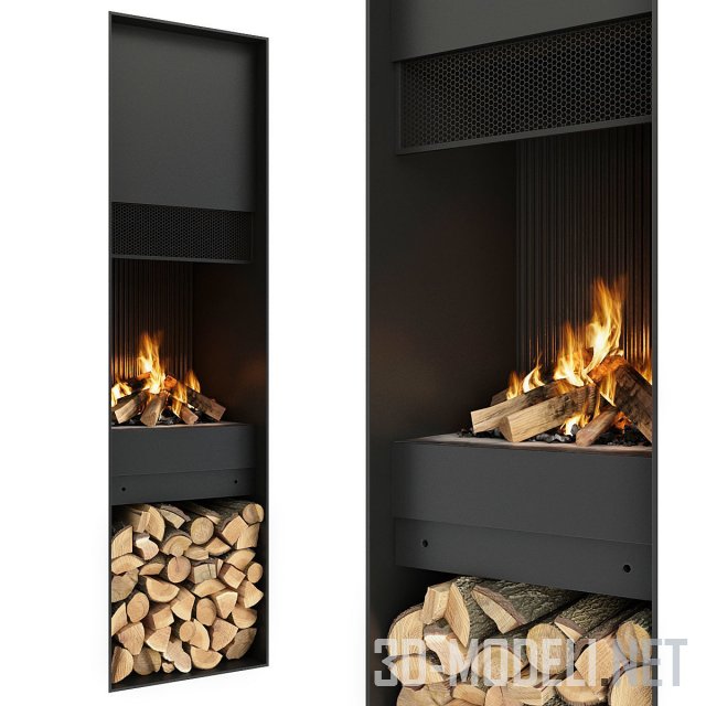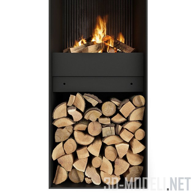 Профессиональная трехмерная модель современного камина с отсеком для хранения дров.