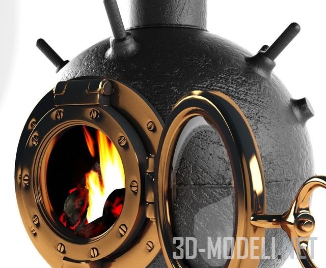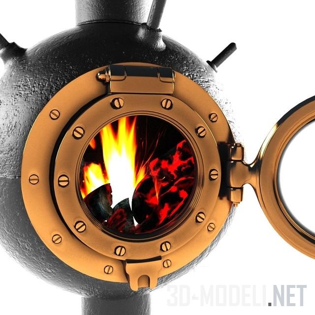 Подвесной камин-батискаф, оригинальный вариант для наполнения интерьера. Реалистичная и качественная трехмерная модель.