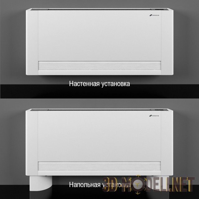 3d модель радиатора Innova AirLeaf. Основными характеристиками этого прибора является охлаждение, осушение, обогрев и очищение воздуха. Он прекрасно адаптирован для установки в коридорах, галереях, мест с большим размером оконного стекла и пр. Это новое, современное решение, которое идеально интегрируется в интерьер, благодаря качеству и дизайну. Размеры AirLeaf SL-RS 800: высота 579 мм, ширина 1335 мм, глубина 129. Габариты для AirLeaf SLS 400: высота 379мм, ширина 935 мм, глубина 129 мм. Текстуры есть.