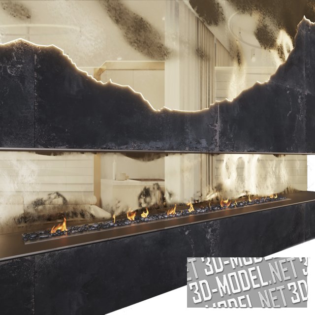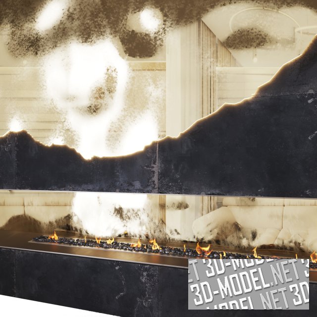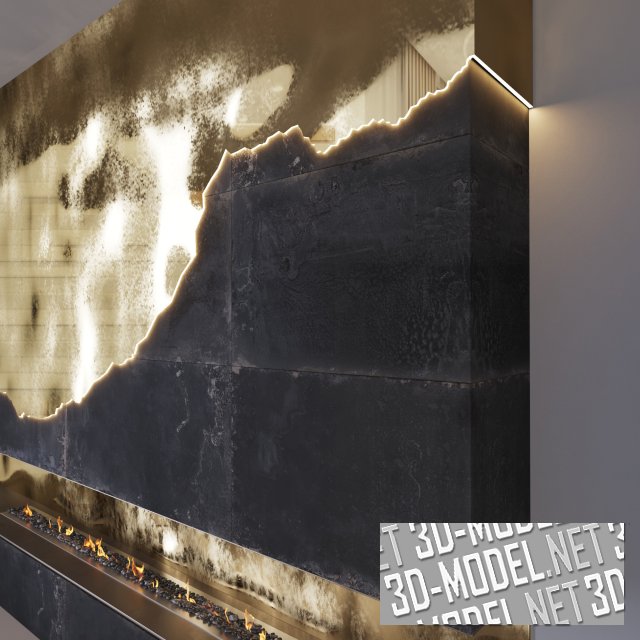 Стильный камин с минималистичным, но эффектным дизайном. Отделка в сочетании черного и золота привлекает внимание и выглядит очень акцентированно.